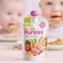 • Heartier multi-ingredient purees, including those mixed with grains or meats