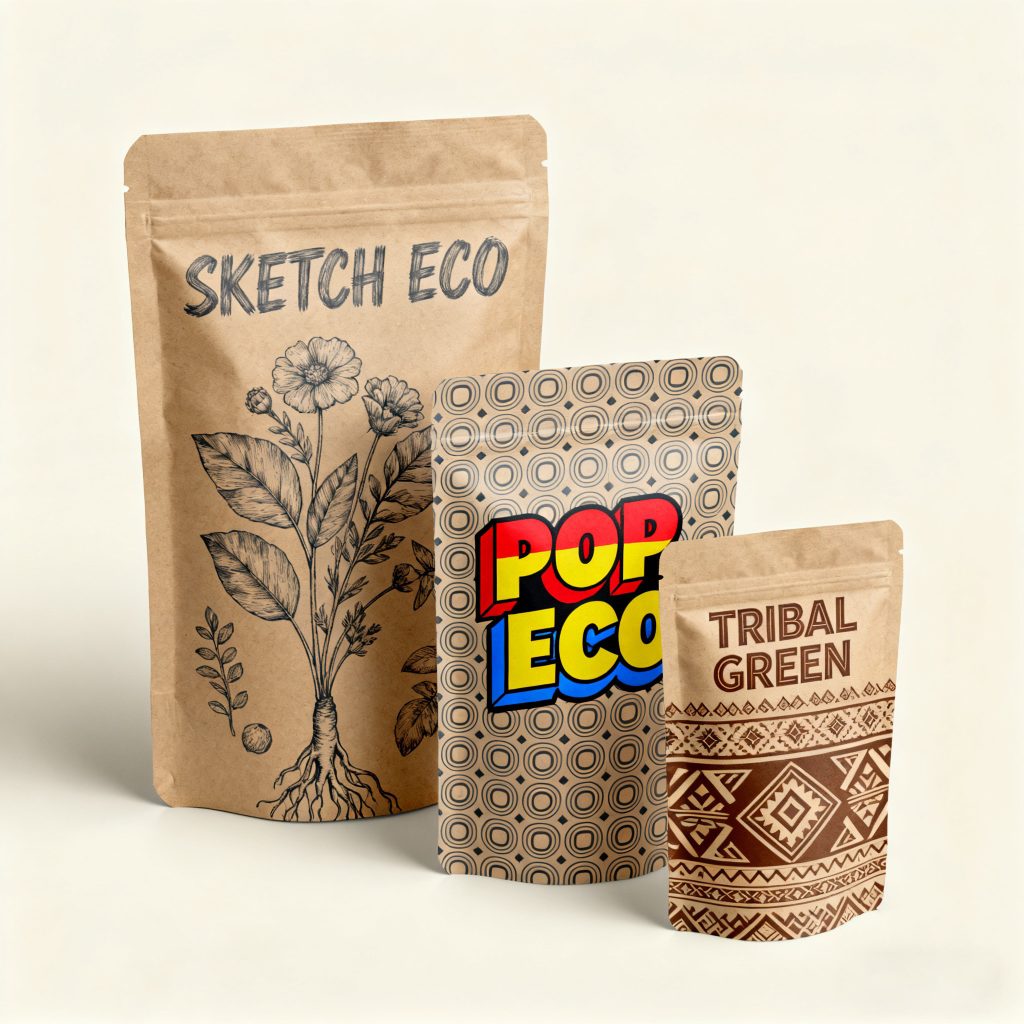 Convey a natural, artisanal, or eco-conscious brand message with our Kraft paper bags. Often combined with a high-barrier lining, these pouches are perfect for organic coffee, tea, nuts, and specialty goods. Their earthy, tactile finish offers a premium, rustic appeal that stands out.