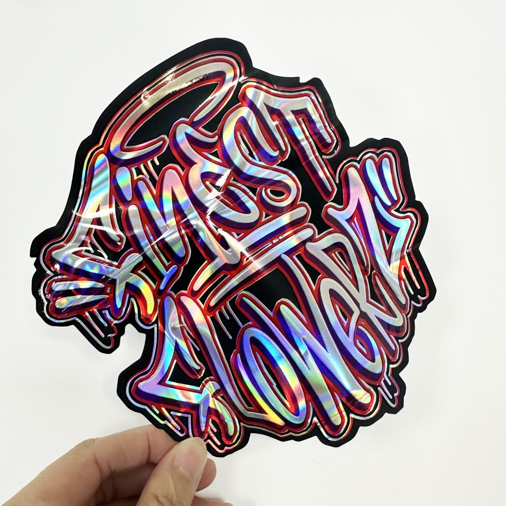 We specialize in custom, die-cut shapes. Instead of a standard rectangle, we can create a pouch that is shaped like your logo, a character, or any unique contour. This is one of the best ways to make your brand stand out on a crowded dispensary shelf.